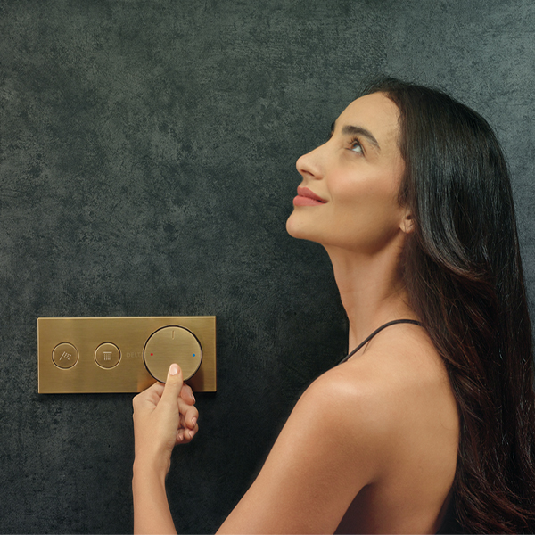 אינטרפוץ מקלחת 4 דרך בלחיצת כפתור מהונדס בדיוק רב, בגודל קומפקטי ואלגנטי, המחליף את פונקציונליות הדחיפה ומשיכה המגושמת של כפתורי הסבה קונבנציונליים.