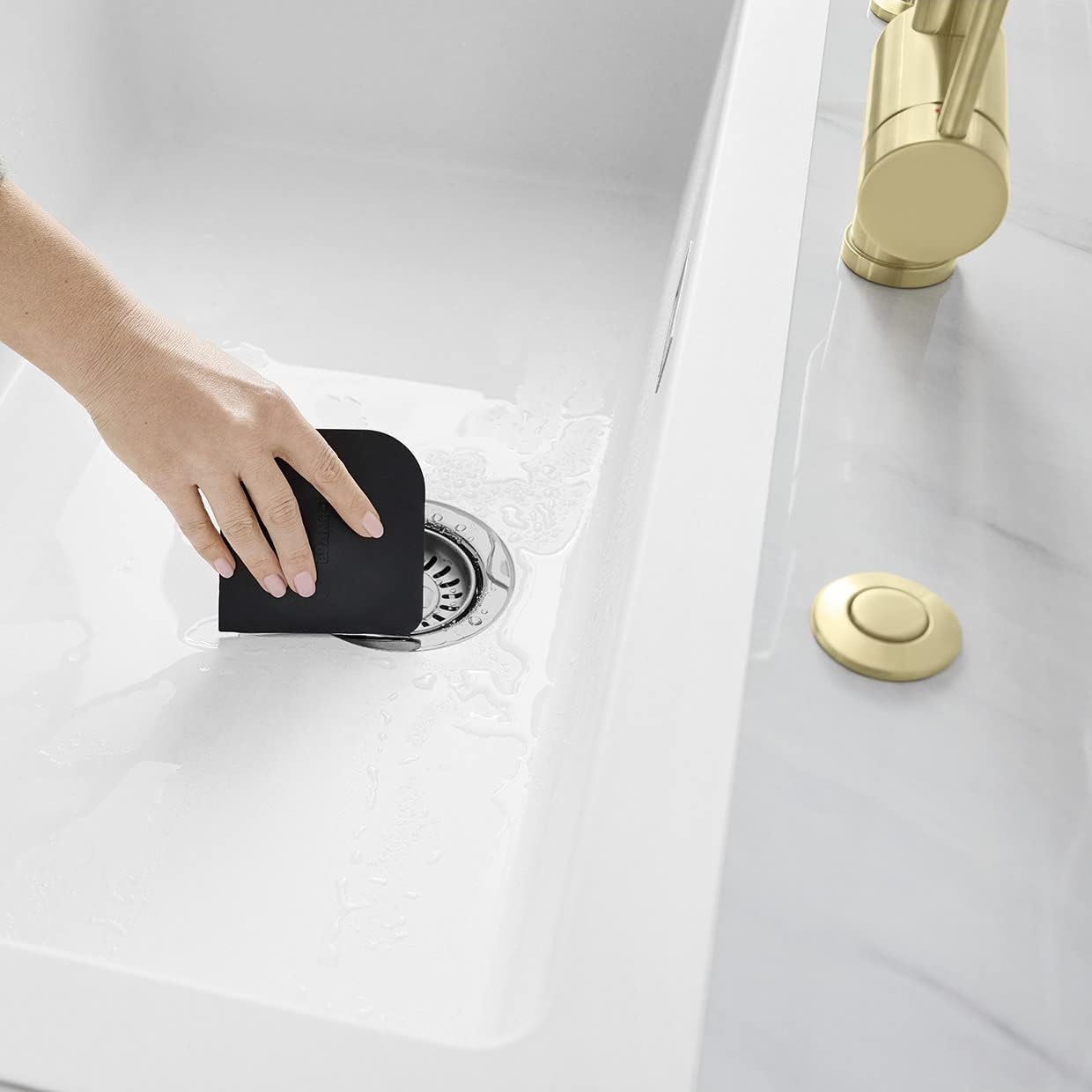 העיצוב הייחודי מאפשר הסרה קלה ומהירה של מים ממשטח הכיור ומהפינות – גם במקומות שקשה להגיע אליהם.