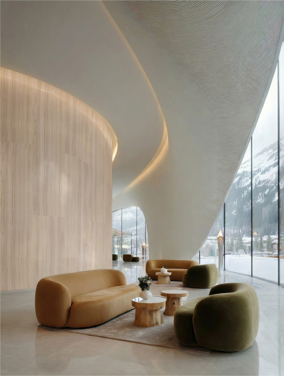 הקומפוזיציה מאזנת בין עומק למראה טבעי, יחד עם עידון מודרני היוצר אסתטיקה עיצובית מתוחכמת.