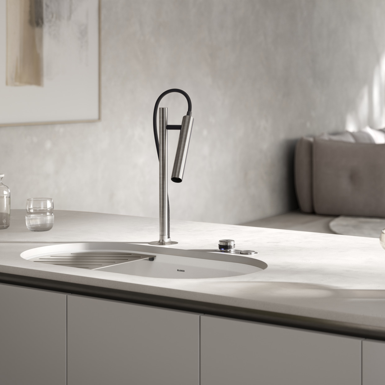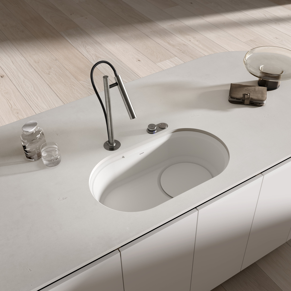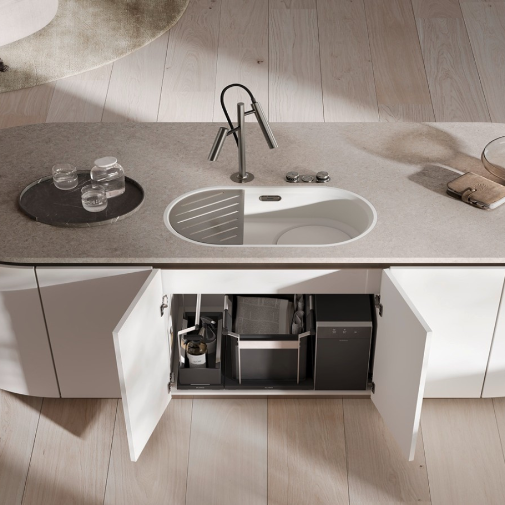 הכיור עמיד בפני שריטות, חום גבוה של עד 300°C, ומוגן באמצעות שכבת ההגנה הבלעדית של BLANCO, השומרת על גימור מט נצחי לאורך שנים. OOVALON זמין בשני גוונים שנבחרו בקפידה – שחור מיסטי ו-לבן ענן – המשלבים עומק, חמימות וניטרליות המשתלבים בקלות בכל עיצוב מטבח.